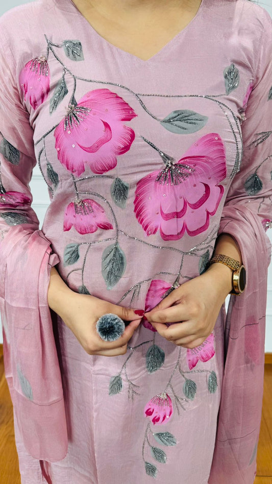 "DOLA" SILK DESIGNER SUIT (PINK)