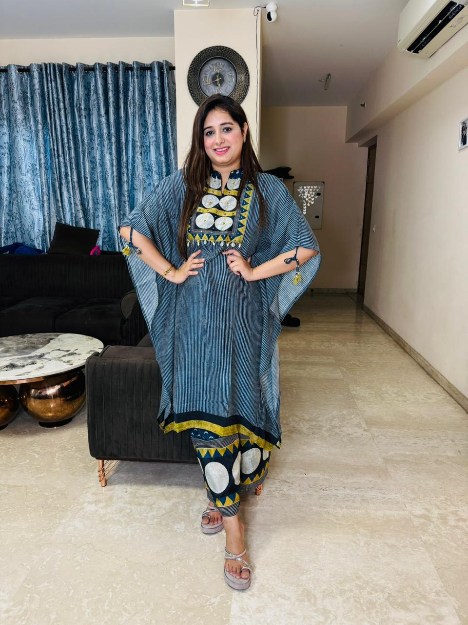 Step into vibrant comfort with the Devki Kaftaan Set, available in sizes M to XXL. This playful ensemble blends effortless style with relaxed fit, perfect for lounging or casual outings. Embrace easy elegance and let your personality shine in every wear.