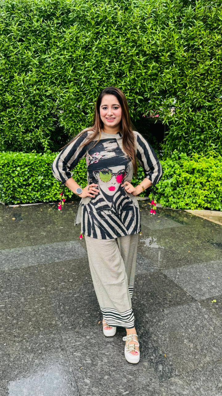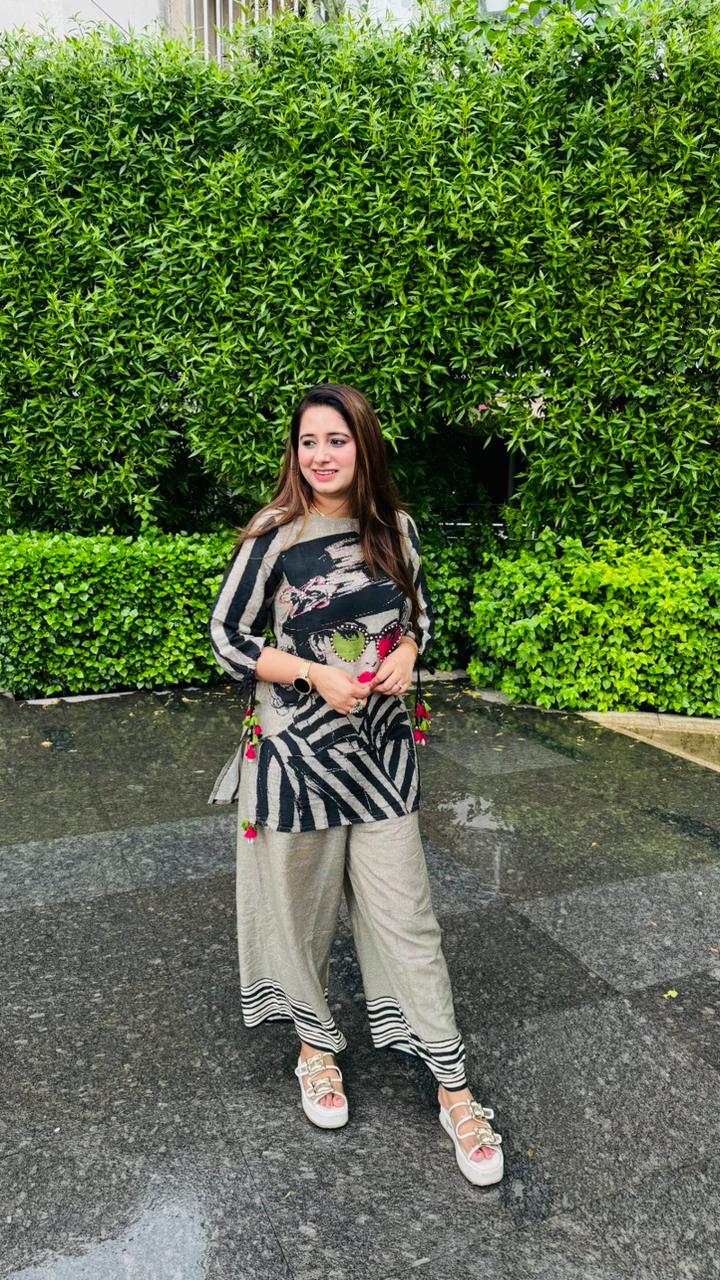 Step out in style with the "DHARNA" Two Piece Set, available in sizes M to XXL. This playful ensemble combines comfort and flair, making it perfect for casual outings or relaxed gatherings. Mix and match with your favorite accessories to create a look that's uniquely you!