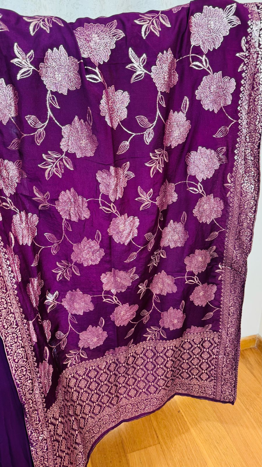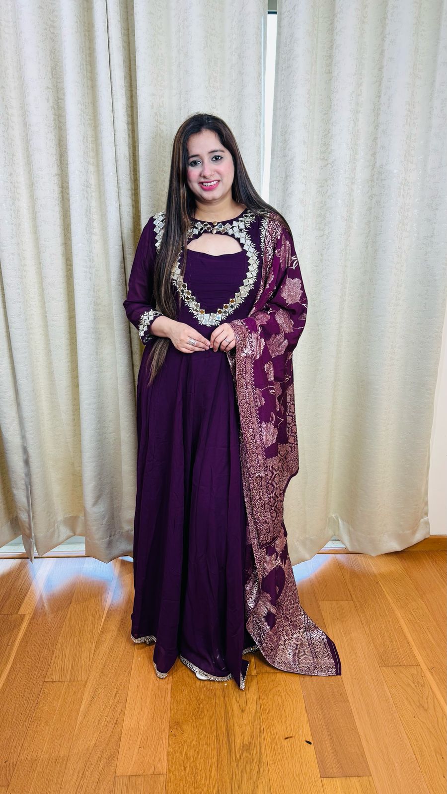 The JEEVIKA designer Anarkali suit is crafted from high-quality georgette fabric and comes with a luxurious banarsi dupatta. Available in sizes M to XXL, this suit offers comfort, elegance, and style for any occasion.