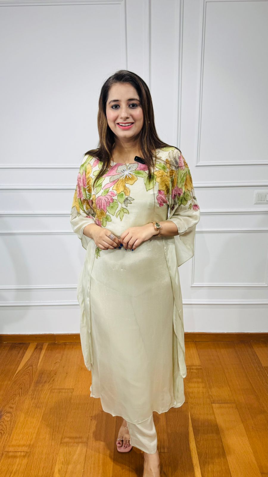 Step into timeless charm with the Khyati Three-Piece Set, designed to bring out your inner glow. This beautifully crafted set includes a coordinated kurta, bottom, and dupatta, blending traditional roots with a modern silhouette.