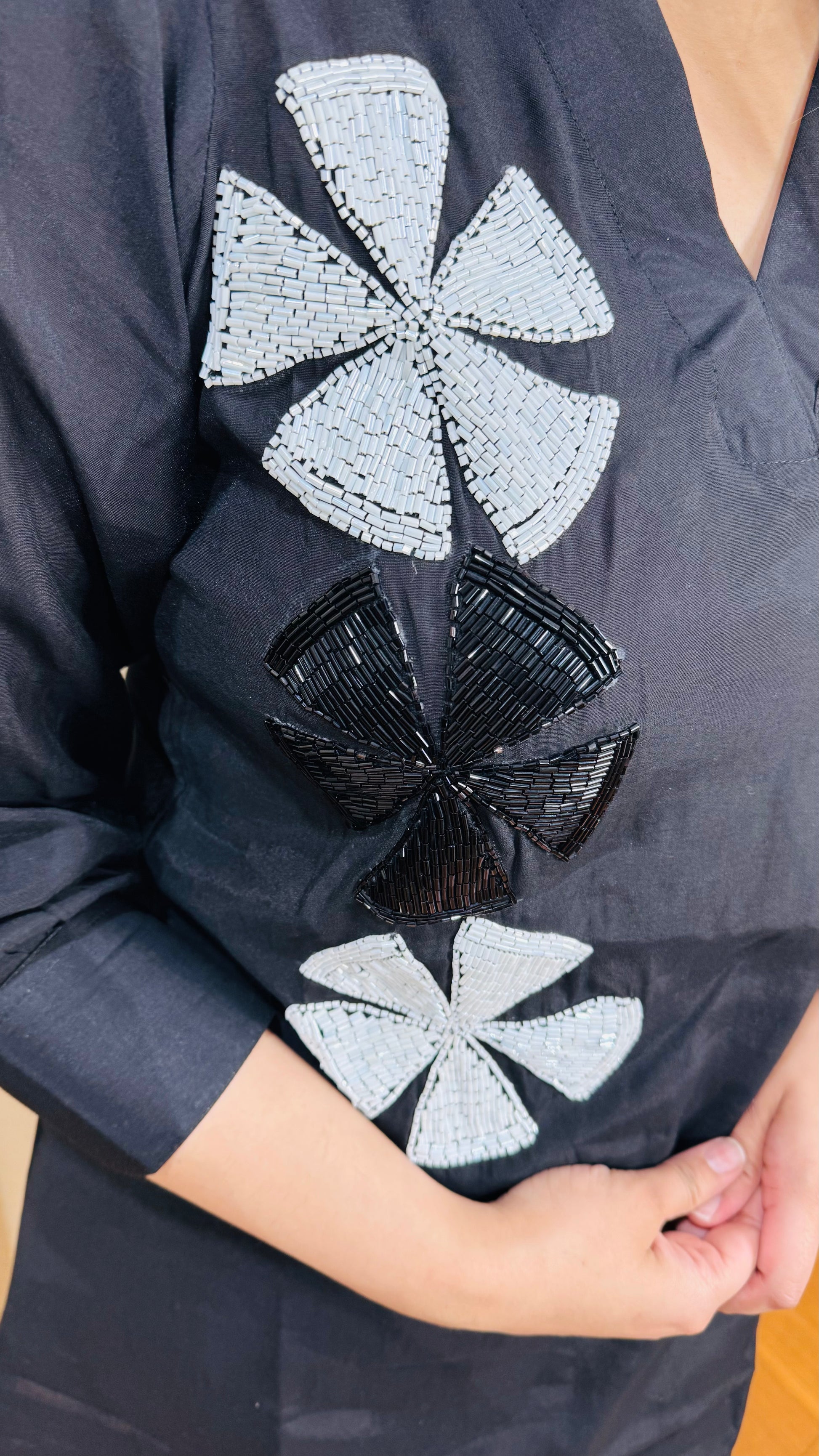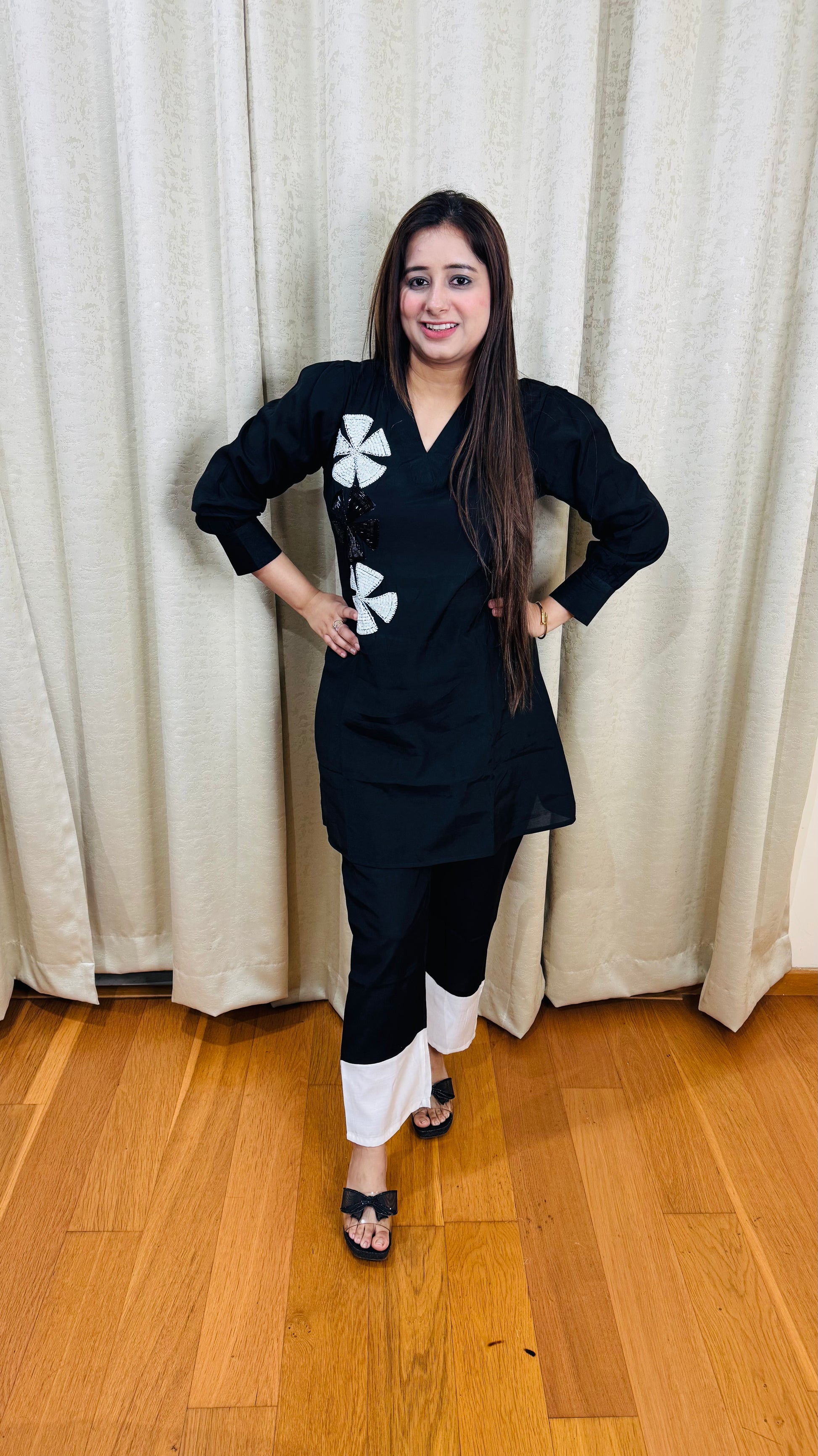 This "MASHA" two-piece set is crafted from high-quality cotton and features handwork flower patches for a unique touch. The fabric is both comfortable and durable, making it perfect for everyday wear. Effortlessly elevate your style with this beautifully designed set.
