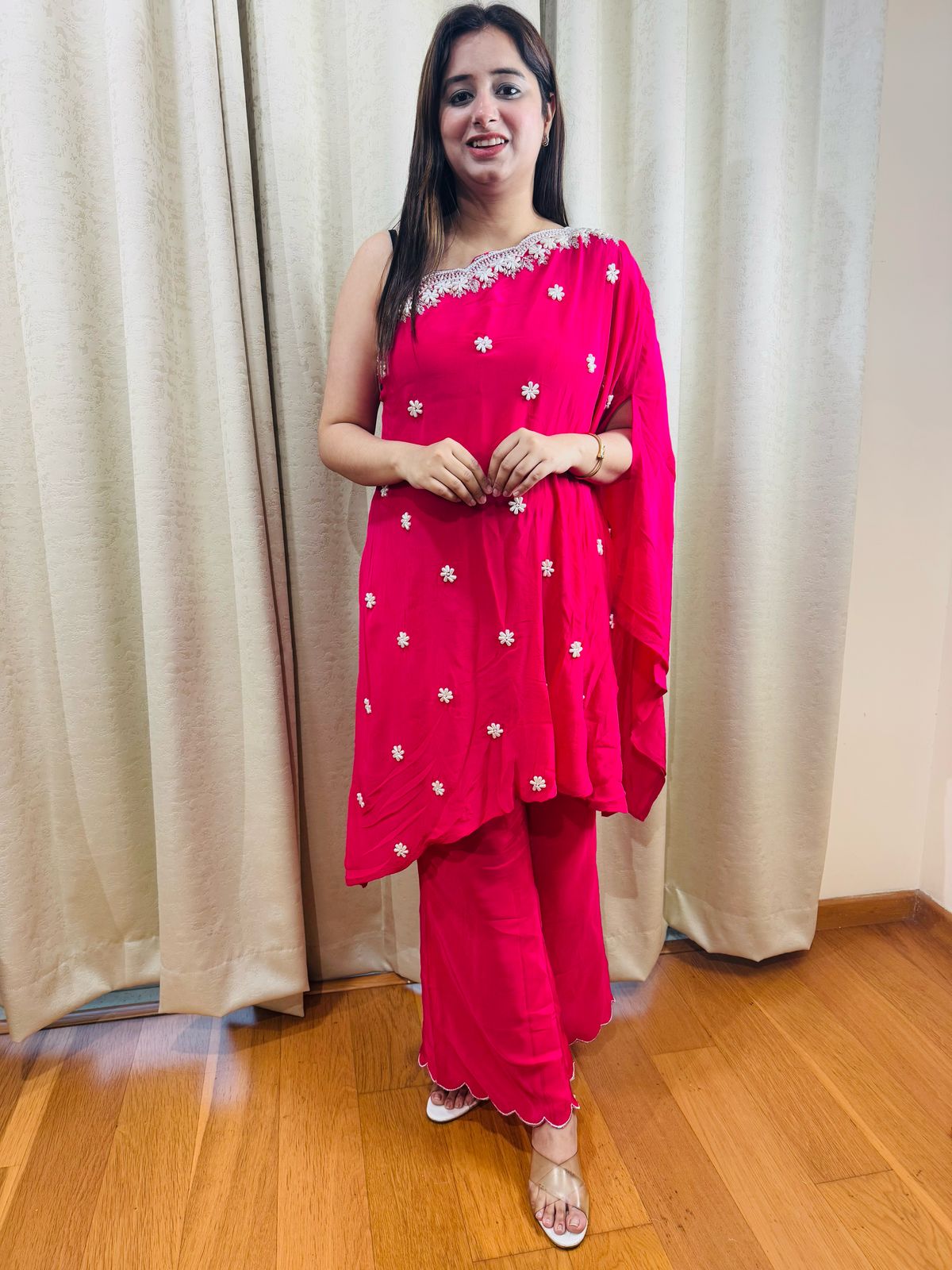 This "MISHKI" two piece set is made from pure crepe and is available in sizes M to XXL. Stay comfortable and stylish with this versatile and high-quality set. Perfect for any occasion, this set is essential for any wardrobe.