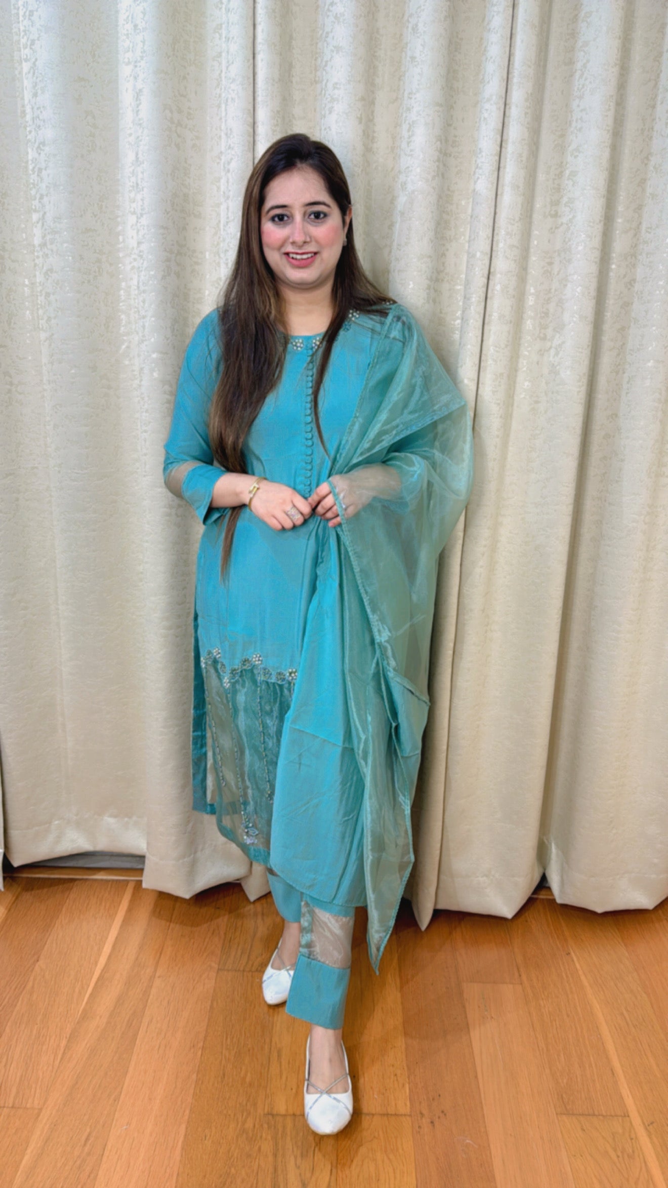 "REET" THREE PIECE KURTA SET (GREEN)