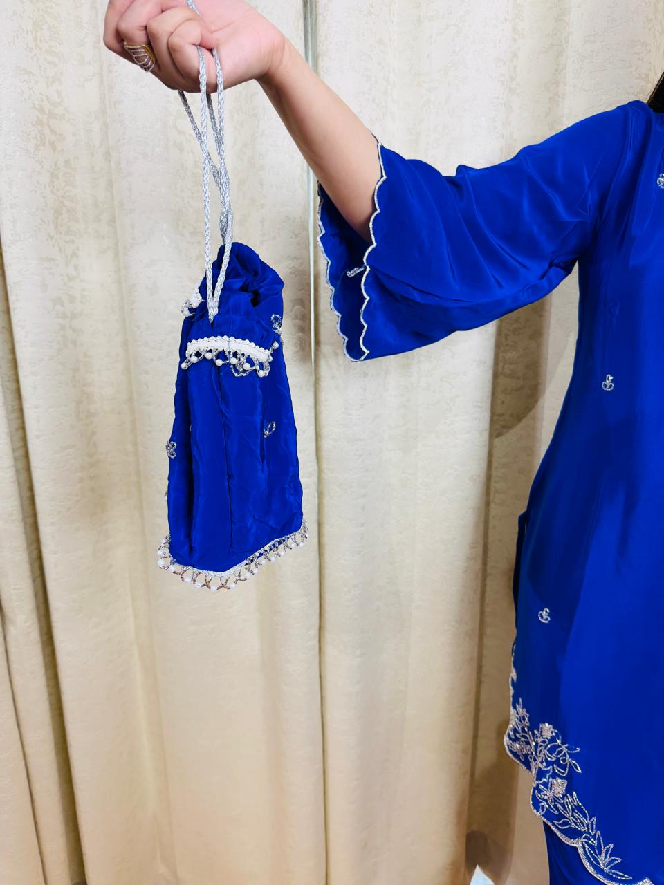 "VARTIKA" DESIGNER SUIT WITH POTLI (BLUE)